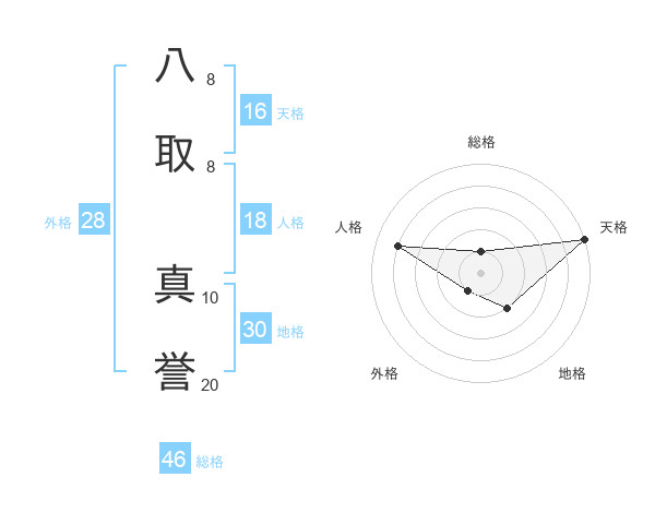 八取 真誉さんの天格は16画の5点!