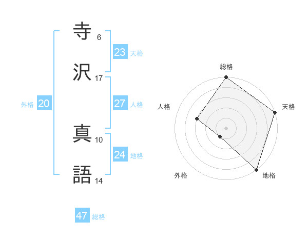 寺沢 真語さんの天格は23画の5点!