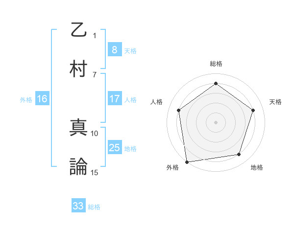 乙村 真論さんの天格は8画の4点!