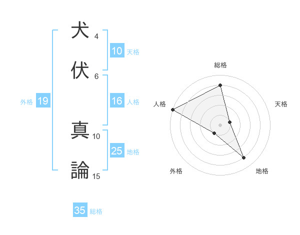 犬伏 真論さんの総格は35画の4点!