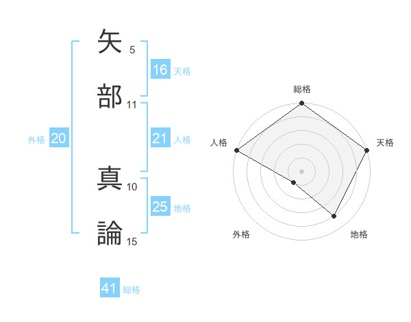 矢部 真論さんの天格は16画の5点!