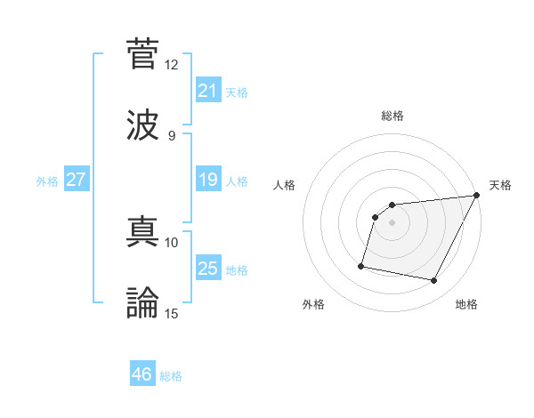 菅波 真論さんの天格は21画の5点!