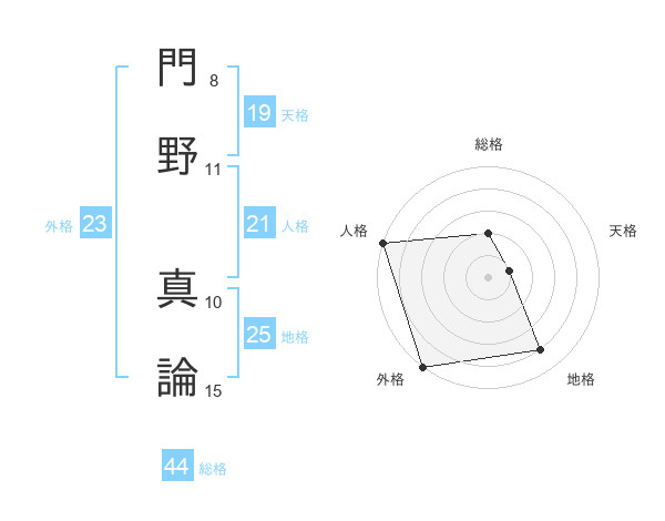 門野 真論さんの総格は44画の2点!