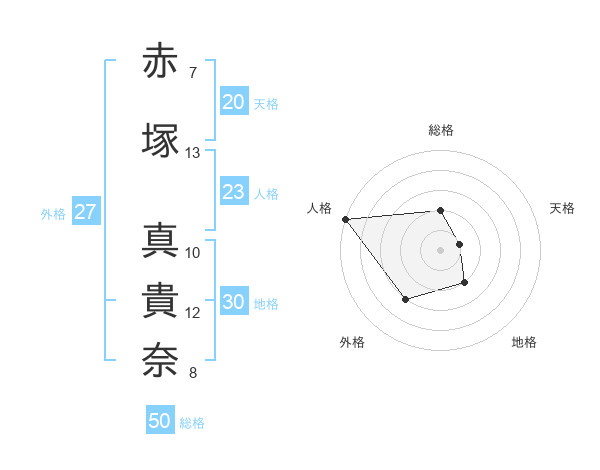 赤塚 真貴奈さんを姓名の画数から五運を鑑定