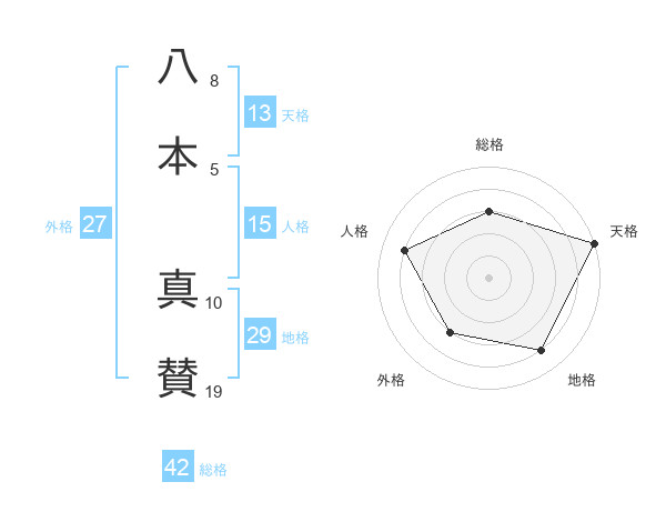 八本 真賛さんの天格は13画の5点!