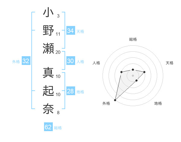 小野瀬 真起奈さんを姓名の画数から五運を鑑定