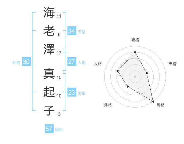 海老澤 真起子さんの総格は57画の4点!