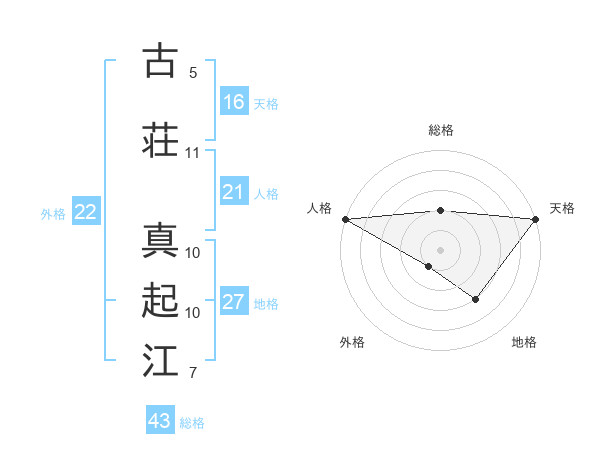 古荘 真起江さんを姓名の画数から五運を鑑定