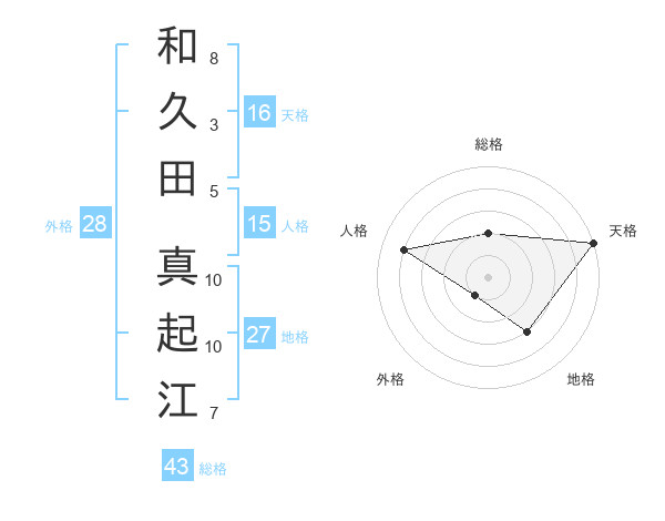 和久田 真起江さんを姓名の画数から五運を鑑定