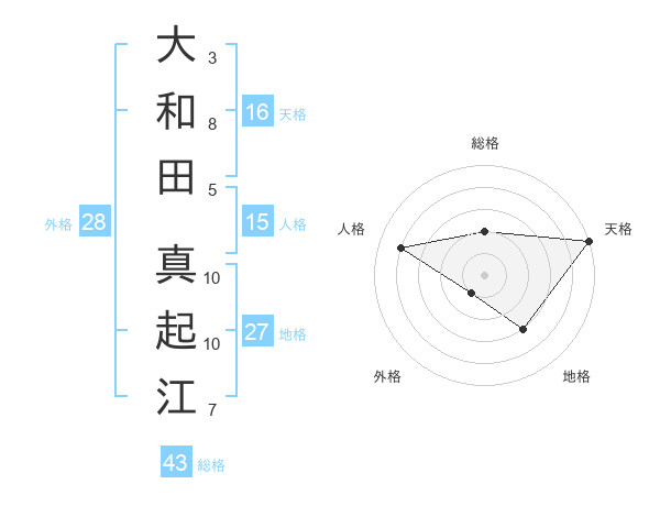 大和田 真起江さんを姓名の画数から五運を鑑定