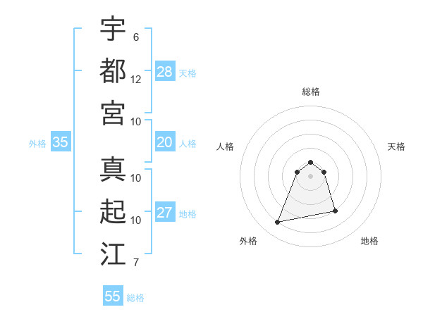 宇都宮 真起江さんを姓名の画数から五運を鑑定