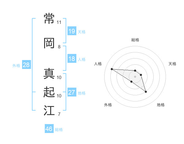 常岡 真起江さんの天格は19画の1点!