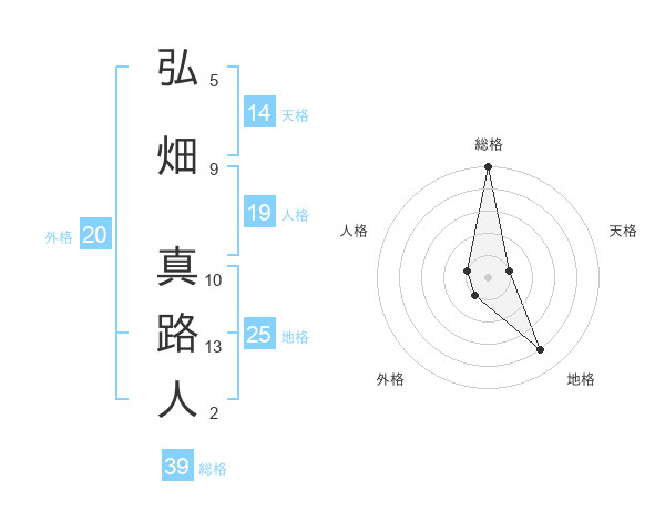 弘畑 真路人さんを姓名の画数から五運を鑑定