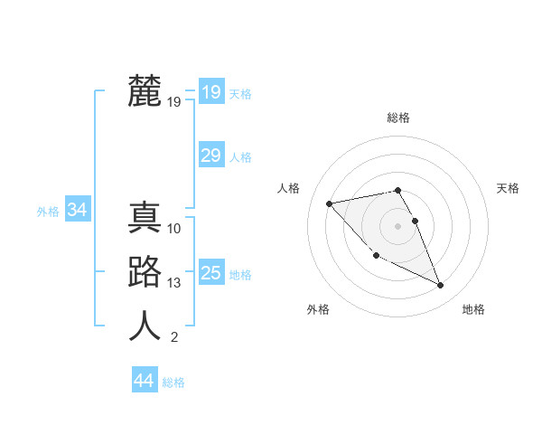 麓 真路人さんの総格は44画の2点