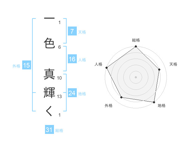 一色 真輝くさんを姓名の画数から五運を鑑定