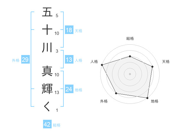 五十川 真輝くさんの人格は13画の5点!
