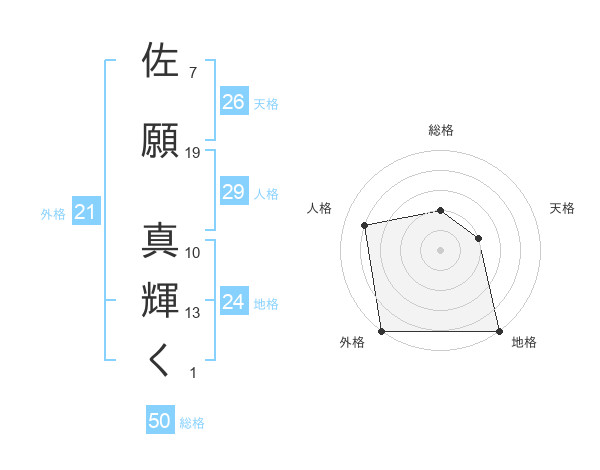 佐願 真輝くさんを姓名の画数から五運を鑑定