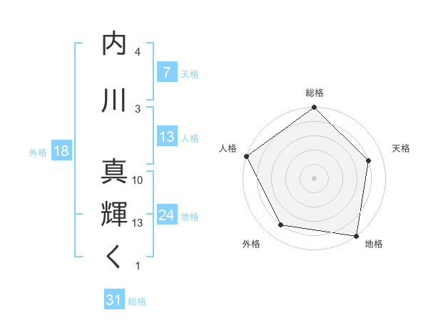 内川 真輝くさんの総格は31画の5点!