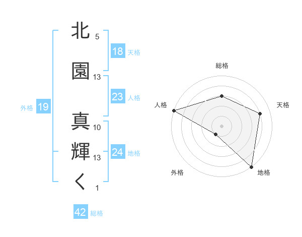 北園 真輝くさんを姓名の画数から五運を鑑定