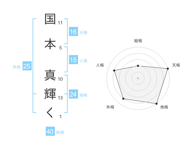 国本 真輝くさんを姓名の画数から五運を鑑定