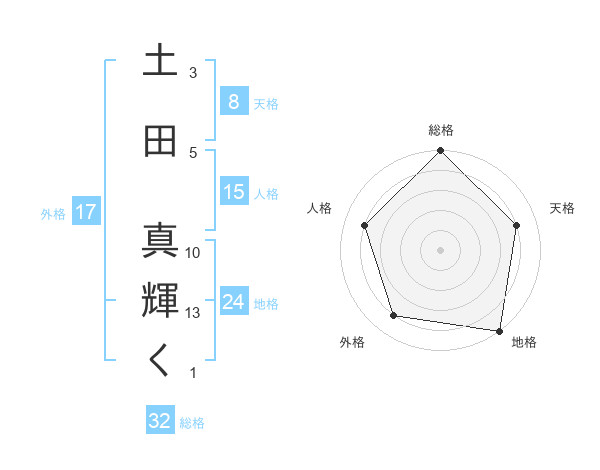 土田 真輝くさんを姓名の画数から五運を鑑定