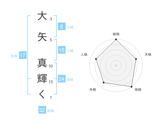 大矢 真輝くさんの総格は32画の5点!