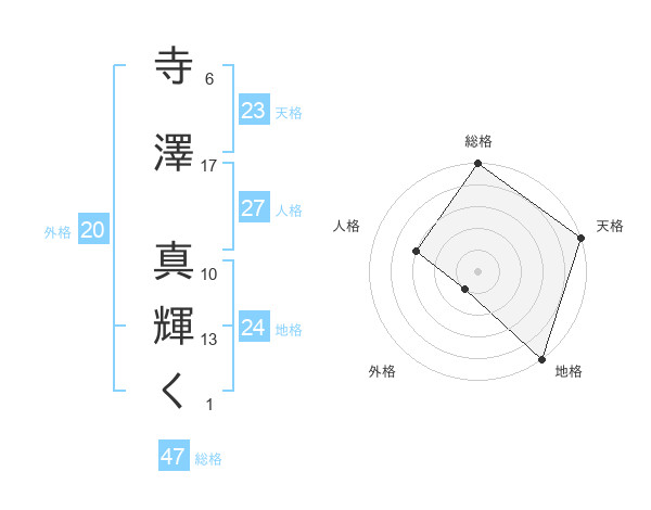 寺澤 真輝くさんを姓名の画数から五運を鑑定