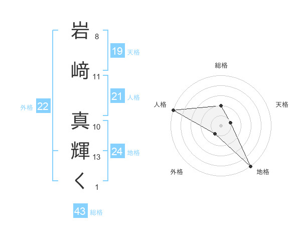 岩﨑 真輝くさんを姓名の画数から五運を鑑定