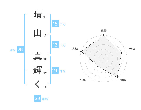 晴山 真輝くさんを姓名の画数から五運を鑑定