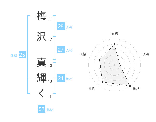 梅沢 真輝くさんを姓名の画数から五運を鑑定