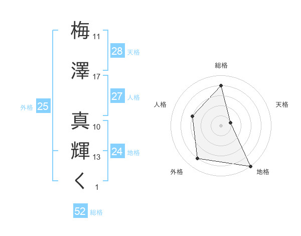 梅澤 真輝くさんを姓名の画数から五運を鑑定