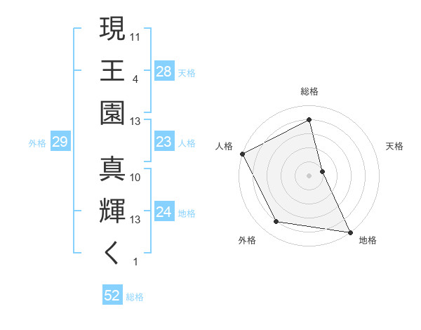 現王園 真輝くさんを姓名の画数から五運を鑑定