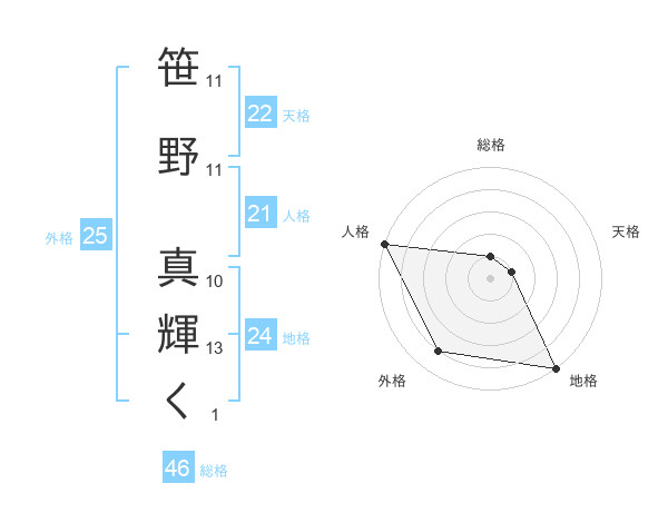 笹野 真輝くさんを姓名の画数から五運を鑑定