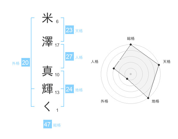 米澤 真輝くさんを姓名の画数から五運を鑑定
