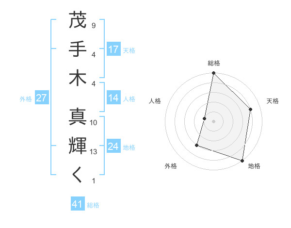 茂手木 真輝くさんを姓名の画数から五運を鑑定