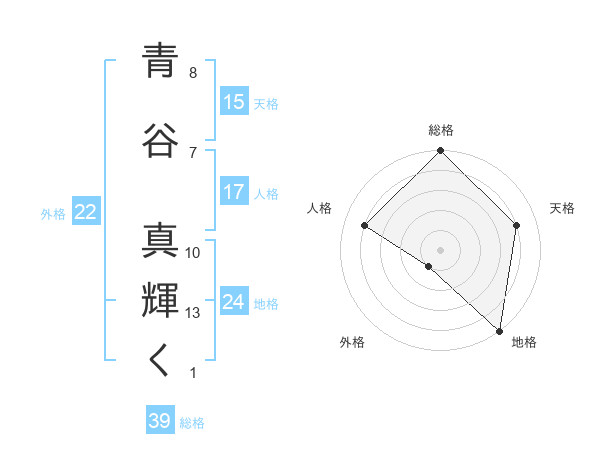 青谷 真輝くさんを姓名の画数から五運を鑑定