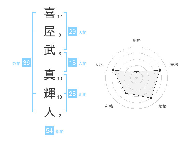 喜屋武 真輝人さんを姓名の画数から五運を鑑定