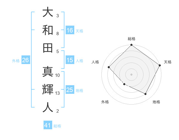 大和田 真輝人さんを姓名の画数から五運を鑑定
