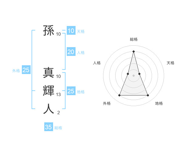 孫 真輝人さんの総格は35画の4点!