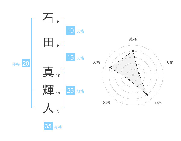 石田 真輝人さんを姓名の画数から五運を鑑定