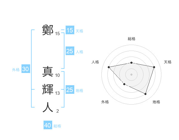 鄭 真輝人さんを姓名の画数から五運を鑑定