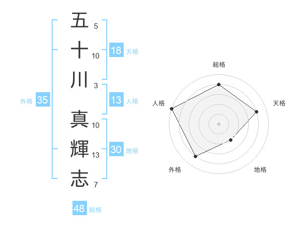 五十川 真輝志さんを姓名の画数から五運を鑑定