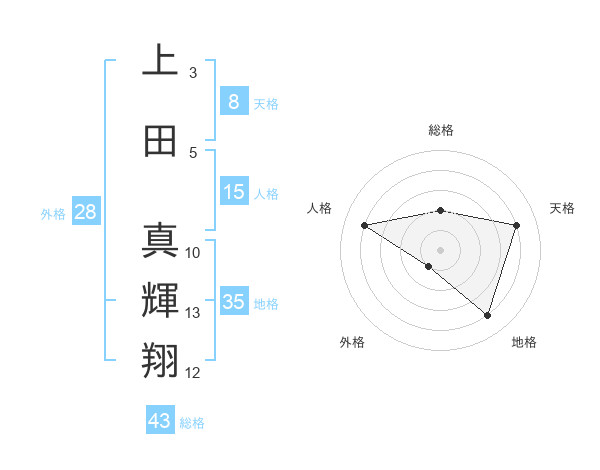上田 真輝翔さんを姓名の画数から五運を鑑定