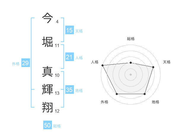 今堀 真輝翔さんの総格は50画の2点!