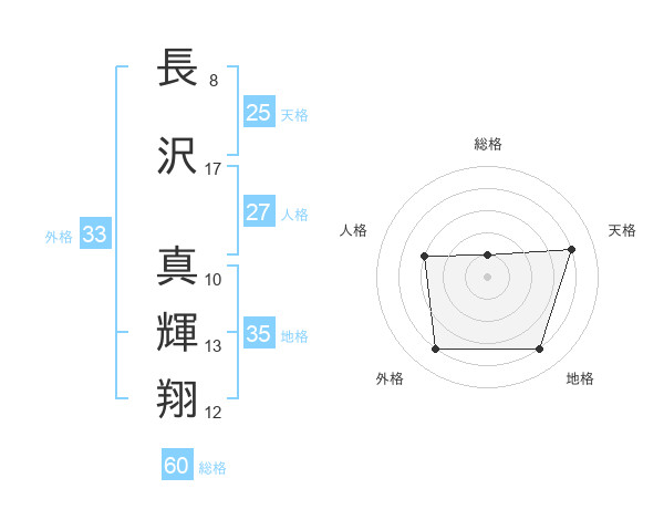 長沢 真輝翔さんの地格は35画の4点!