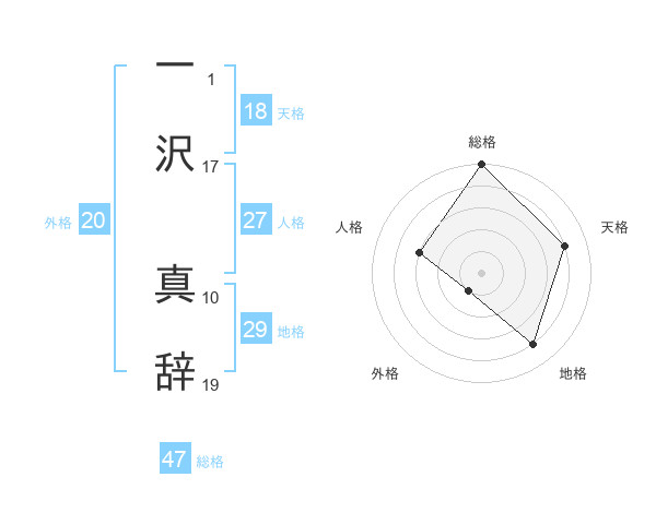 一沢 真辞さんの総格は47画の5点!