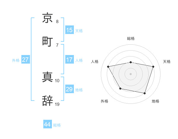 京町 真辞さんの総格は44画の2点!