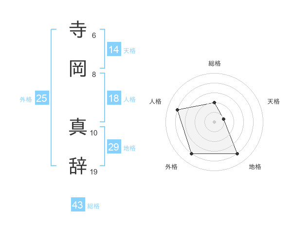 寺岡 真辞さんを姓名の画数から五運を鑑定