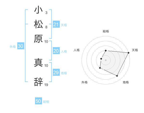 小松原 真辞さんを姓名の画数から五運を鑑定