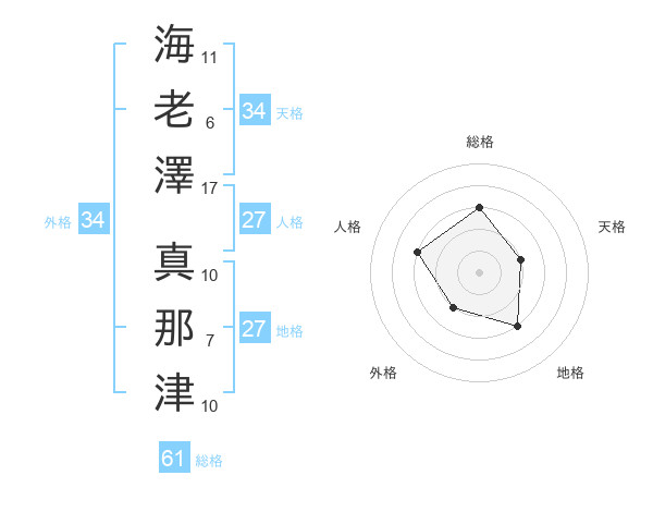 海老澤 真那津さんの総格は61画の3点!